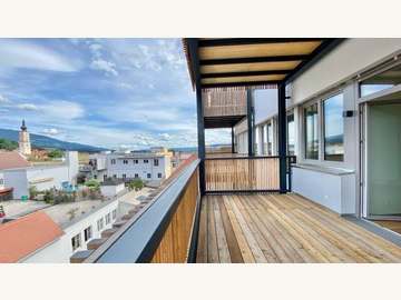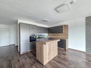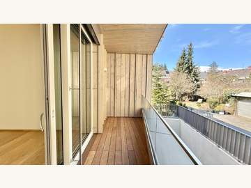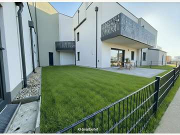 Neuwertige, in Ziegel, qualitativ gut ausgeführte ca. 84m² Mietwohnung im ersten Stock mit ca. 13m² Ostbalkon und ca. 3m² Loggia. Die Küche, die Badezimmerausstattung sowie das Carport mit Abstellraum und der nicht überdachte Parkplatz,. Miete: € 986,-